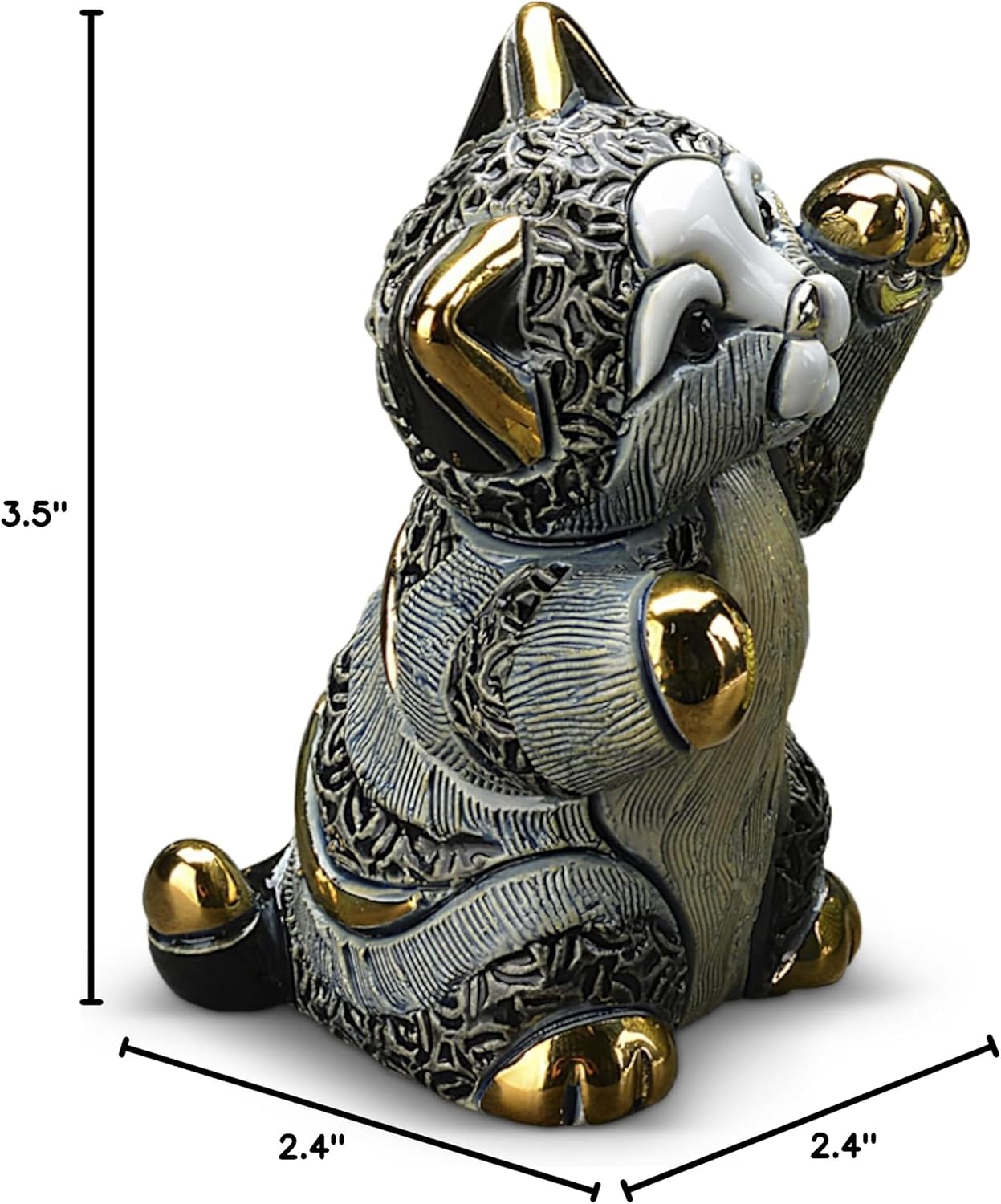 Handmade Sculpted Ceramic Striped Kitten Figurine - The recognizable design of De Rosa Collections reflect a celebration of design, incorporating sculpture, texture and brilliant colors to create unique, stylish pieces. The last touch before the final firing, is accents in 18k Gold and Platinum that add to their irresistible charm and beauty. This collection is brought to you by a family owned business established over 50 years ago located in Uruguay, South America, and is collected world wide. The unique creations are beautiful and elegant in any decor. Each piece is supplied gift boxed, with a certificate of authenticity and information regarding our 100% handmade process and cleaning recommendations.